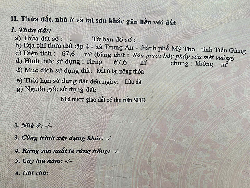 MS 997 : Bán nền 67,6m2 thổ cư 100% ở ấp 4 xã Trung An thành phố Mỹ Tho Tiền Giang