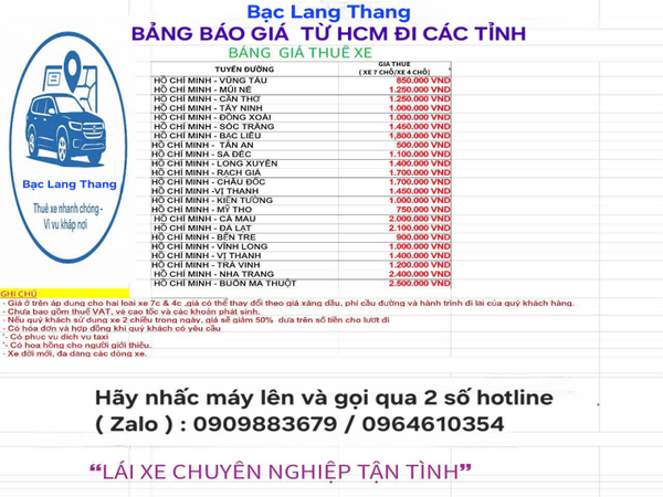 🔔 🔔Bạc Lang Thang có nhận chạy xe dịch vụ tuyến từ TP HCM đi các tỉnh và ngược lại : Phục vụ cho nhu cầu đi khám bệnh,du lịch,đưa đón người thân,đám tiệc ,cưới hỏi ,đưa đón sân bay ,công tác