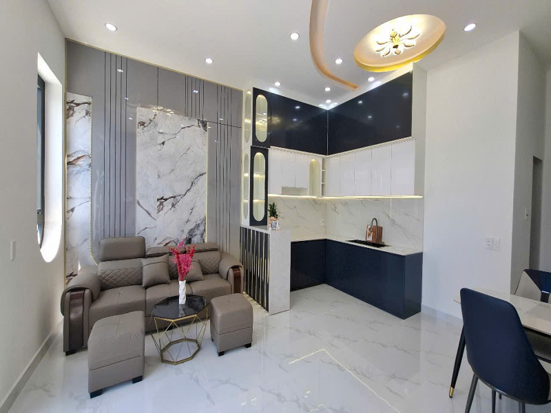 👉Nhà ngang 5m x 18m , hướng Tây Nam. Thiết kế nhà cấp 4 phong cách hiện đại. Nhà có sân để xe rộng rãi, phòng khách,2 phòng ngủ ,nhà bếp ,2 toilets ( có 1 toilet trong phòng), nhà thiết kế cửa hậu mát mẻ, có sân sau phơi đồ .Có nội thất phòng khách,sofa, nội thất bếp, bàn ăn 4 ghế, nội thất toilet, giường ngủ,tủ quần áo