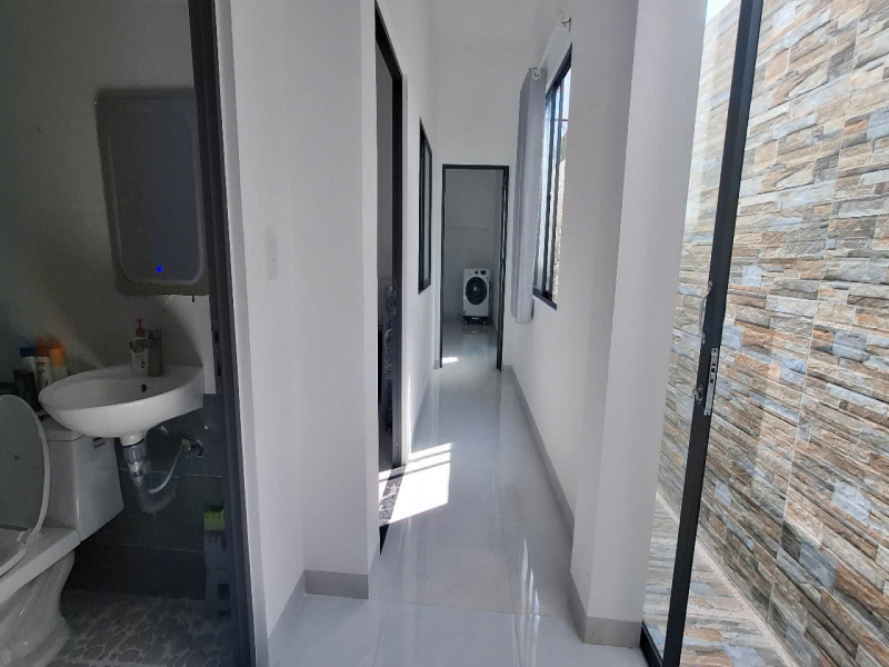 👉 Nhà Ngang 5m x 18,5m, hướng Tây Nam,thổ cư chủ quyền nhà đầy đủ: có sân để xe, phòng khách rộng, phòng thờ,nhà bếp,2 phòng ngủ , 2 toilets ( có 1 toilet trong phòng), có thiết kế hành lang bên hông như giếng trời thông thoáng